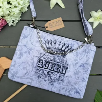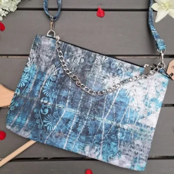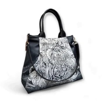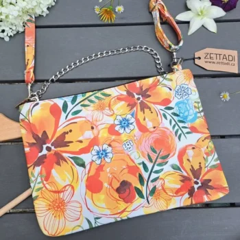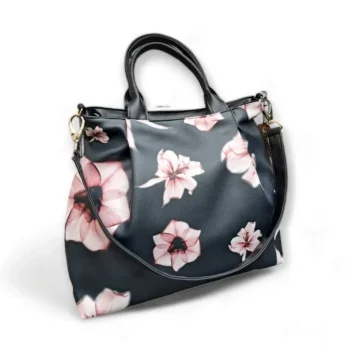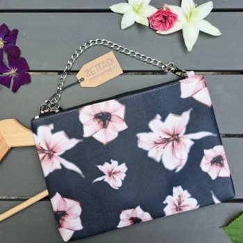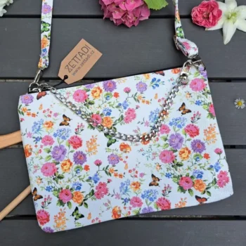 Crossbody s řetízkem černá s růžovými rentgeny květů