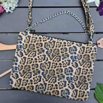 Crossbody s řetízkem – imitace leopardí kožešiny
